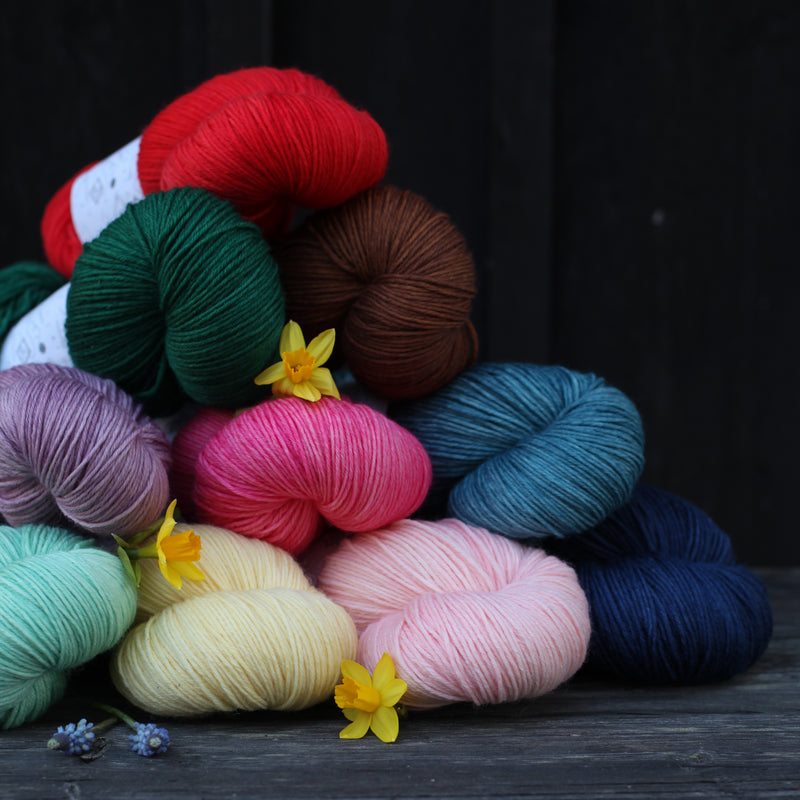 Aara Sisu on lämmin ja kestävä sukkalanka villaisempien ja paksumpien sukkien ystävälle. Värjäsimme Sisuun Aaran all stars-sävyjä sekä ihka uusia lemppareita. Vyyhti riittää mainiosti isoonkin sukkakokoon ja taipuupa tämä lanka mainiosti myös muihin kestävyyttä vaativiin asusteisiin.